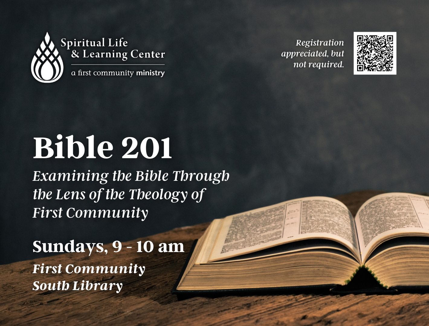 First Community South 1320 Cambridge Blvd, Columbus, OH 43212, Columbus, OH, United StatesSundays October 13-November 17, 2024 9-10 am First Community South Library Register HERE Join the Spiritual Life & Learning Center and facilitators Judy and David Westman as we explore a foundational knowledge of the Bible through the lens of the theology of First Community. Topics include: What is the Bible? Covenants Literature Studying Gospels Paul's Letters […]